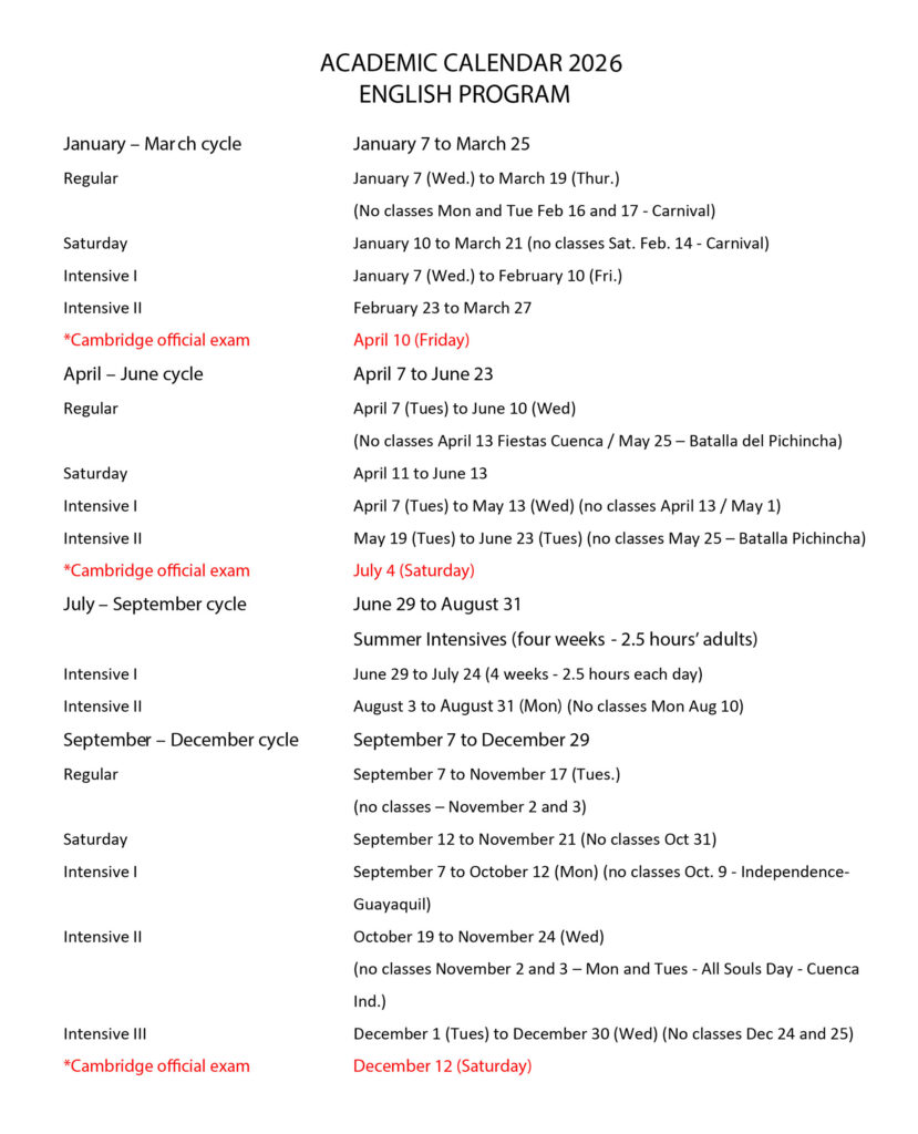 Calendario Académico / Academic Calendar